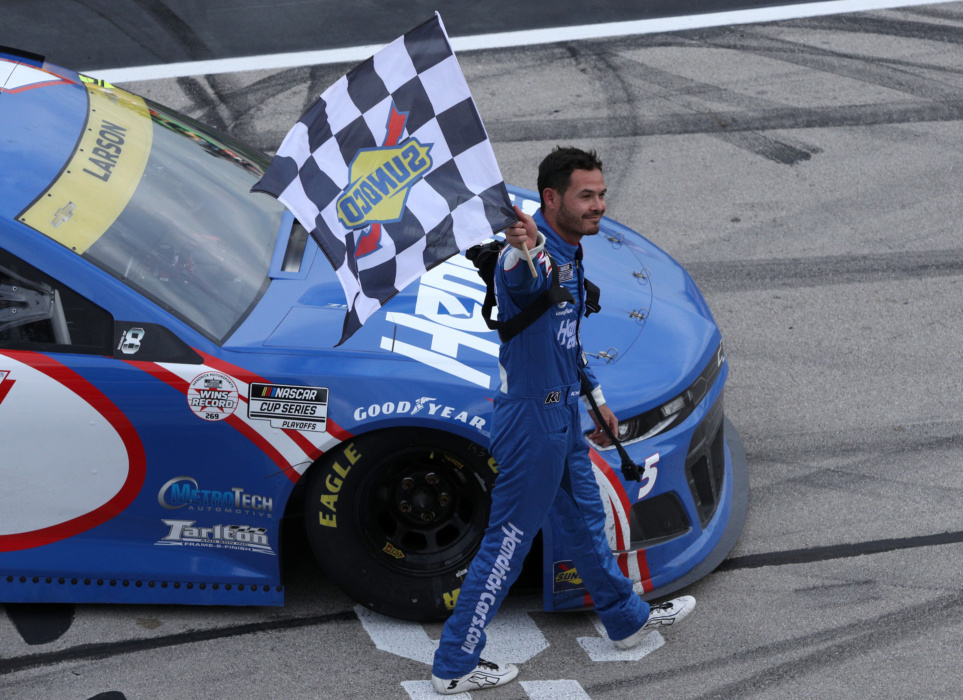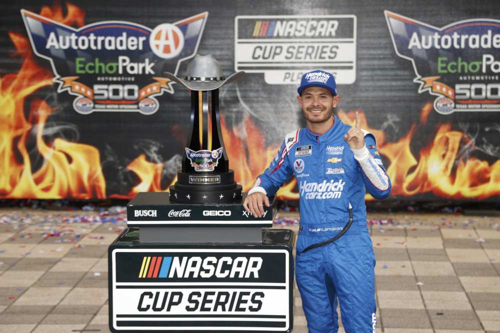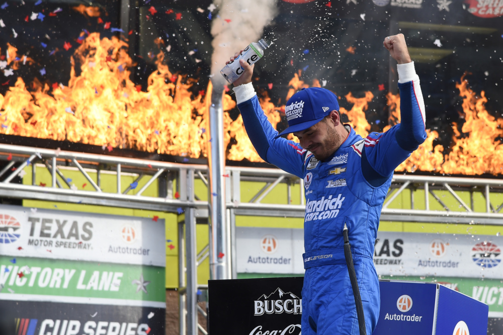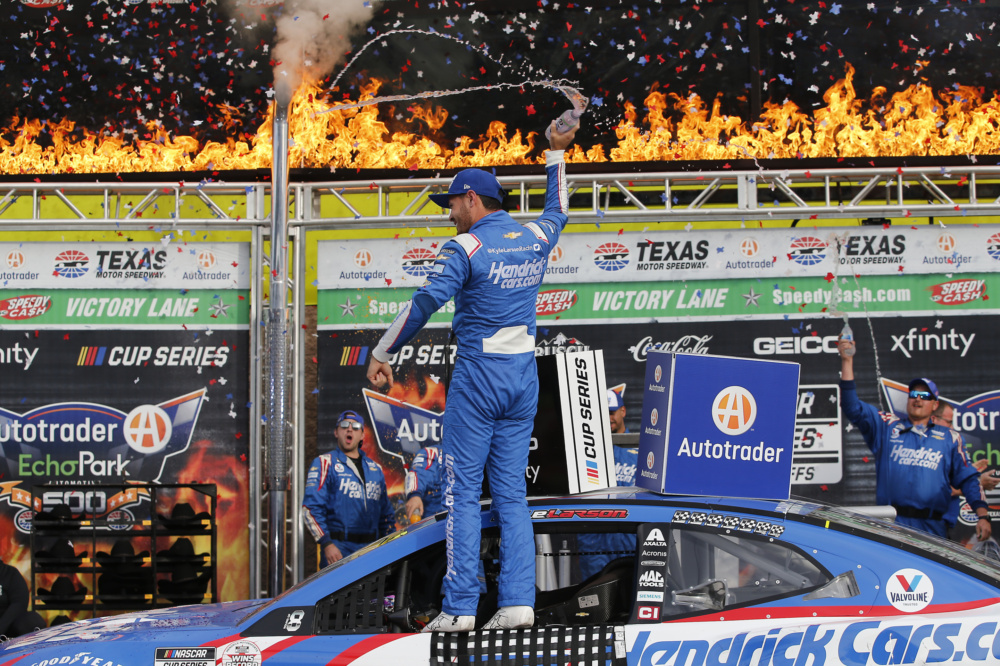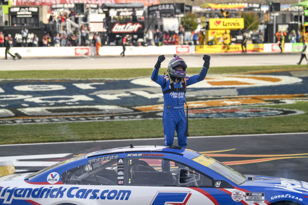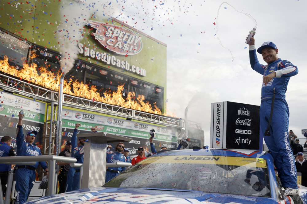 Kyle Larson celebrated in victory lane at Texas Motor Speedway when he took the checkered flag for his career-high eighth victory this year. Check out Larson's celebration after he punched his ticket into the NASCAR Cup Series Championship 4 race.