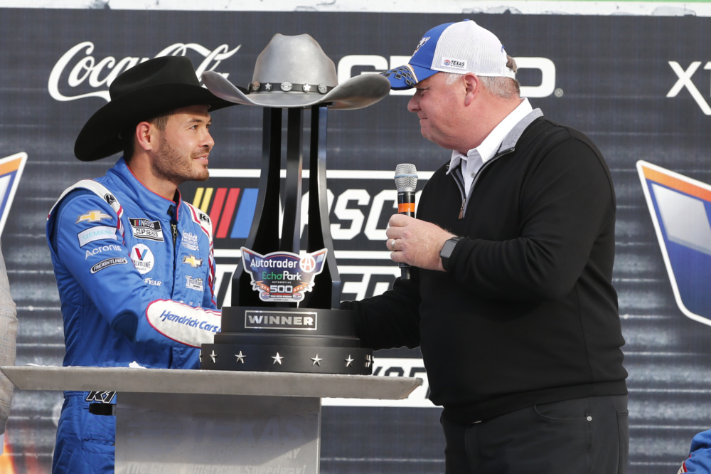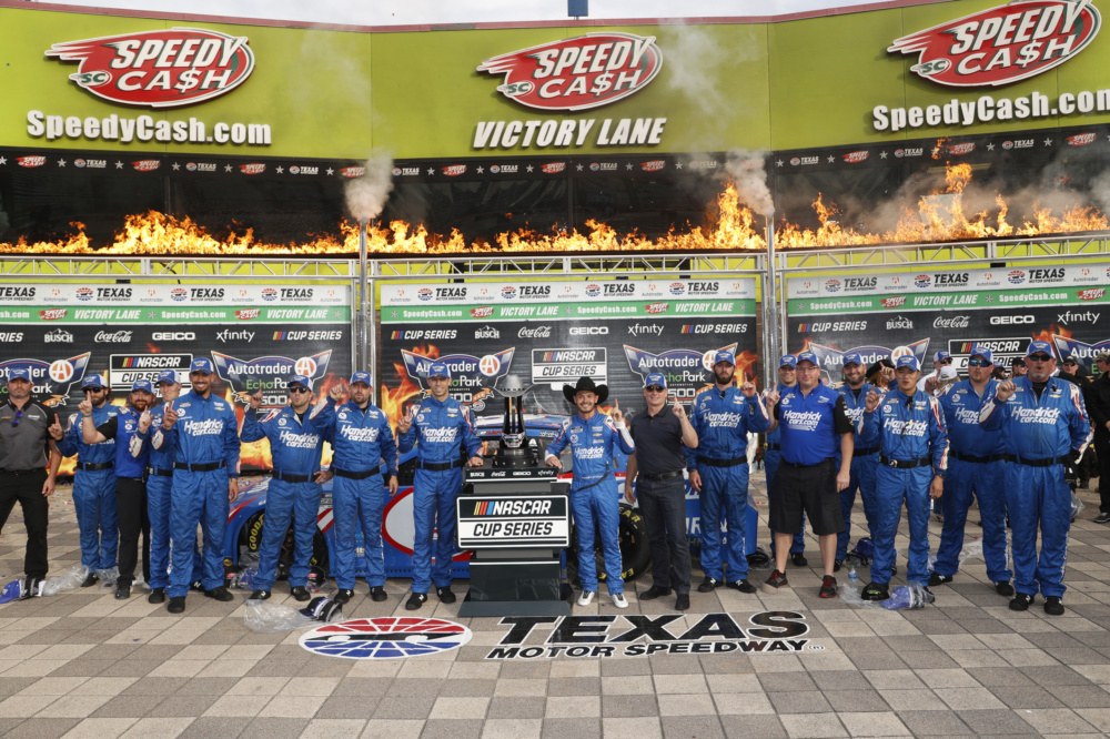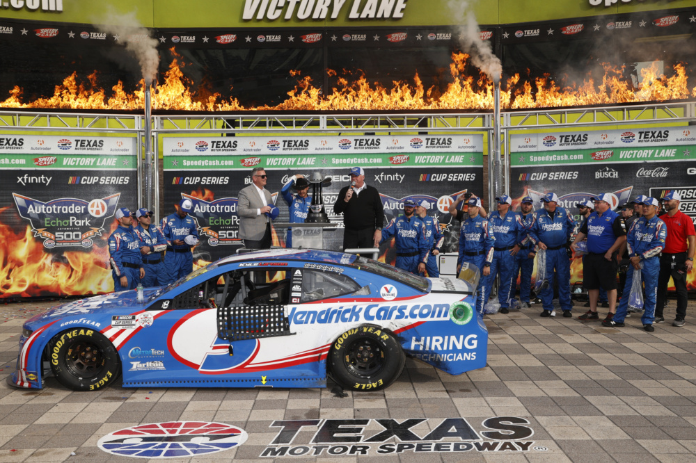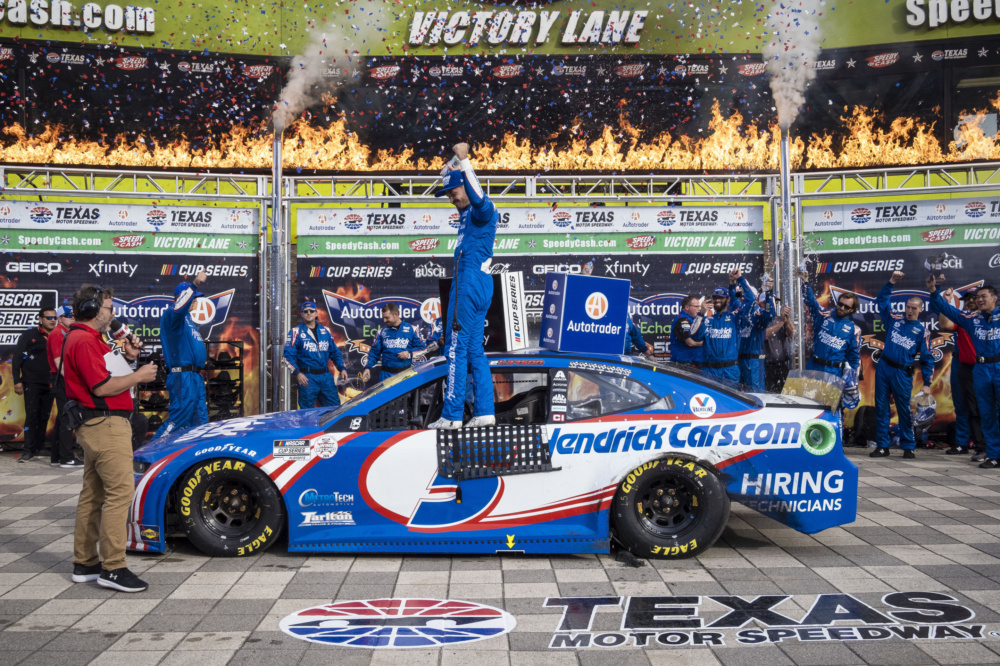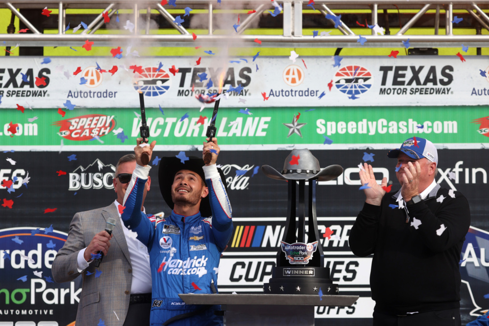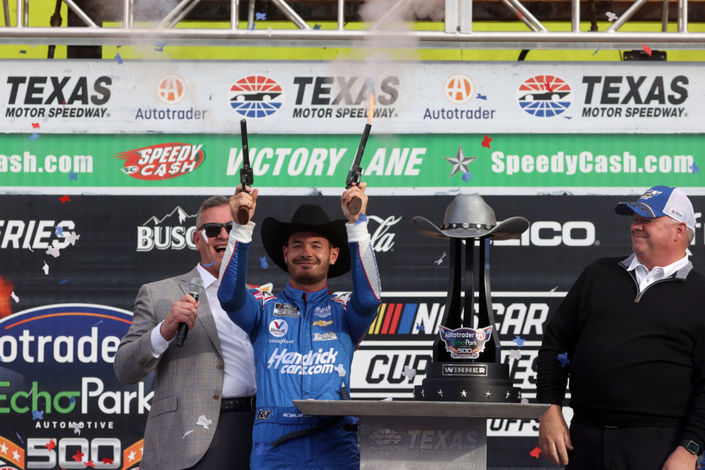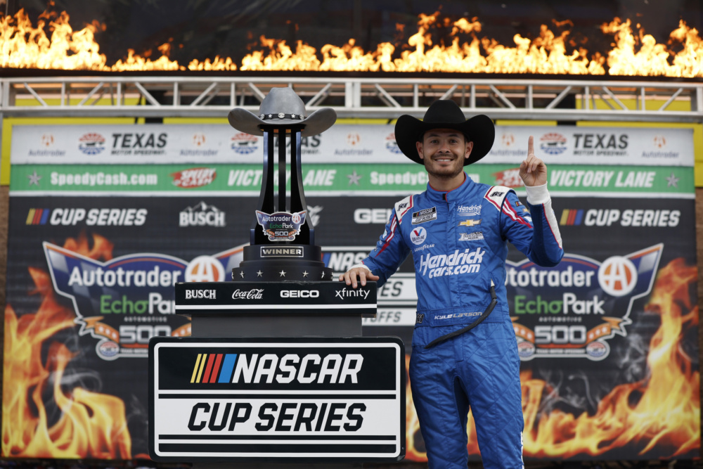 Kyle Larson celebrated in victory lane at Texas Motor Speedway when he took the checkered flag for his career-high eighth victory this year. Check out Larson's celebration after he punched his ticket into the NASCAR Cup Series Championship 4 race.