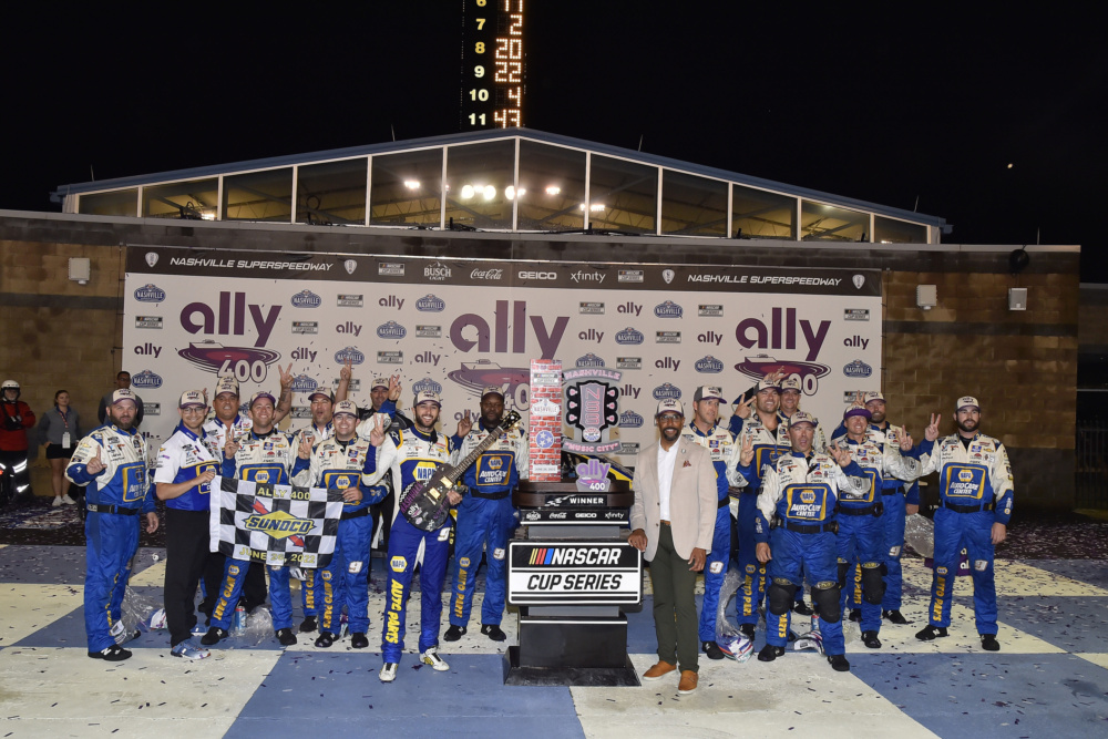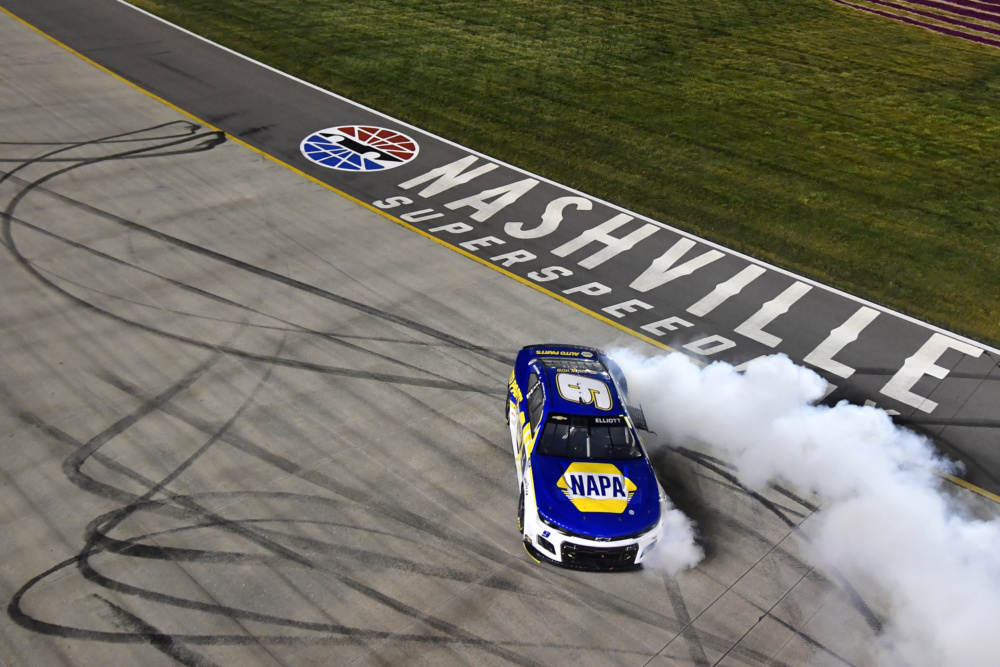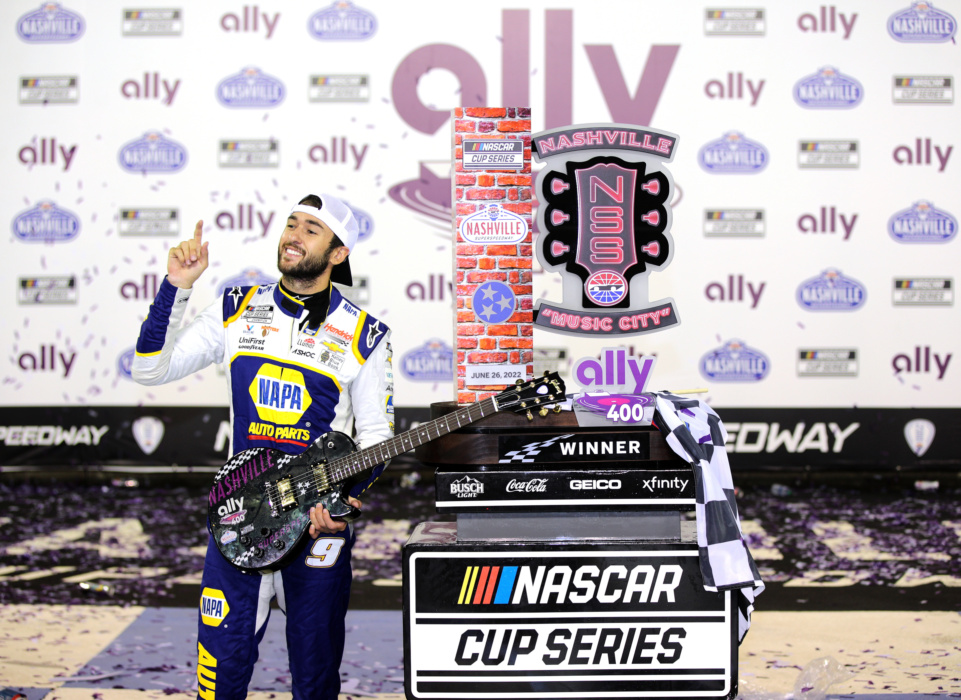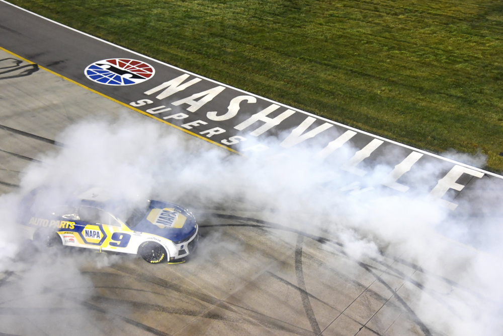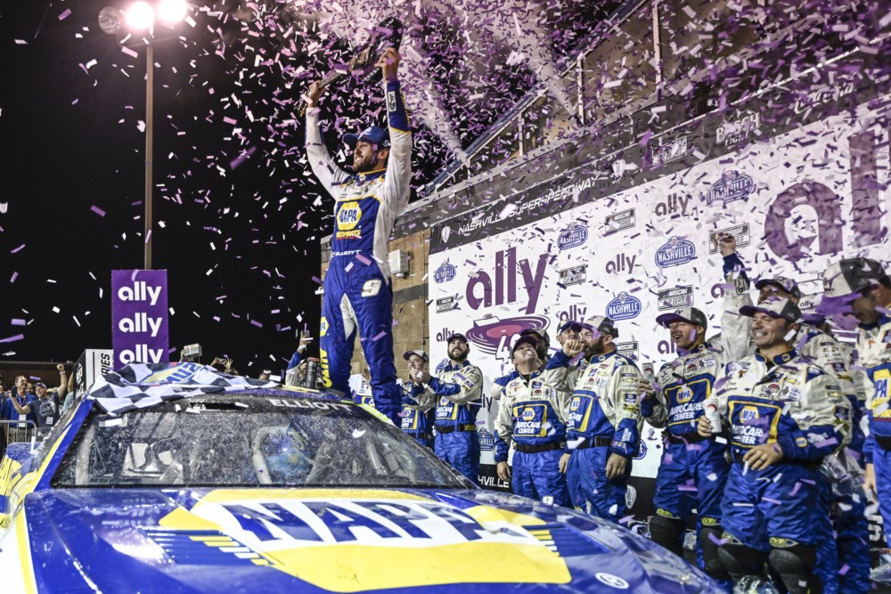 Chase Elliott scored his second win of the 2022 NASCAR Cup Series season on Sunday at Nashville Superspeedway. Both of the driver of the No. 9's wins this season have come on concrete tracks. Take a look at the jubilation and the scenes from victory lane.