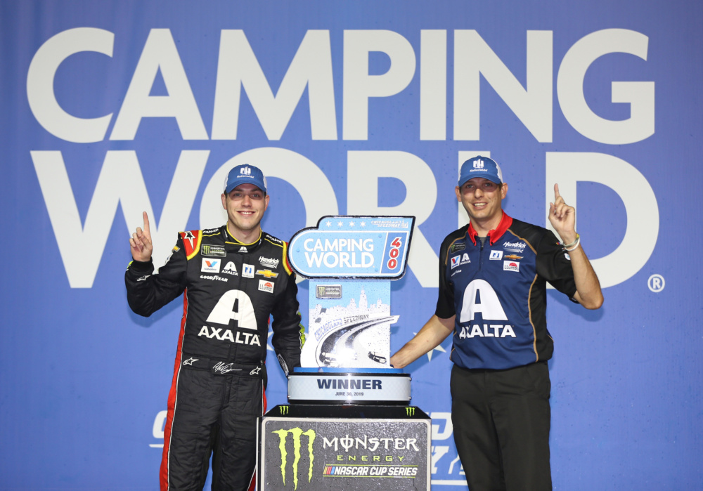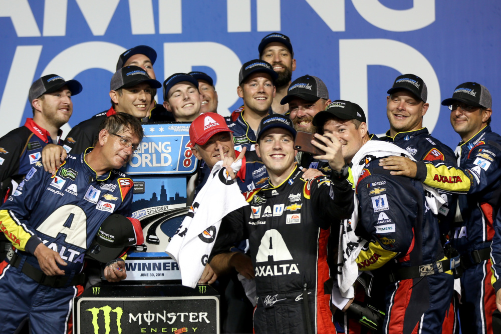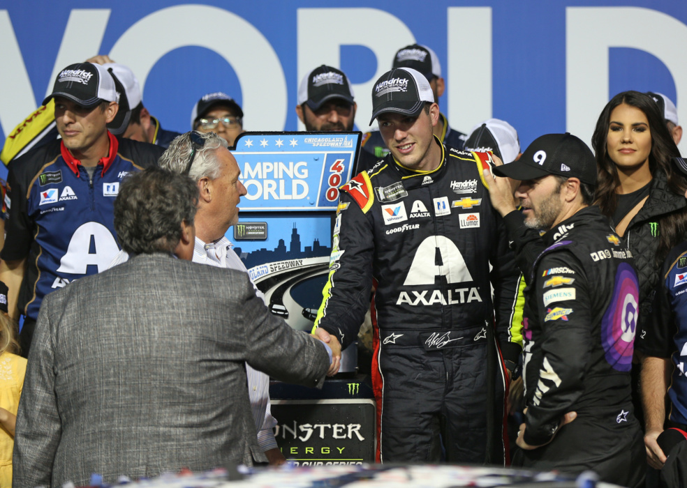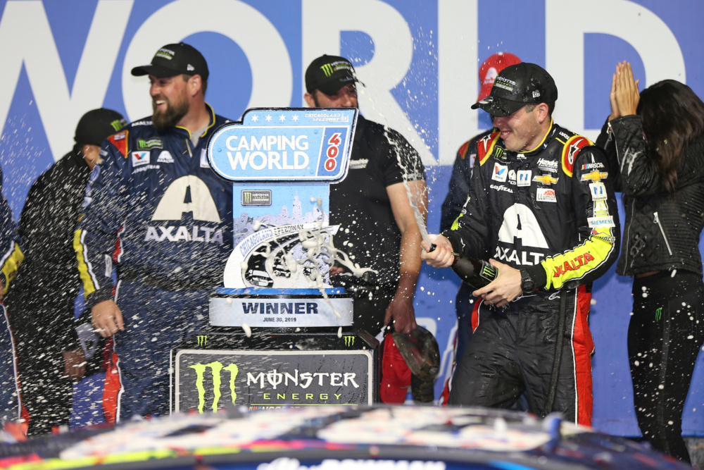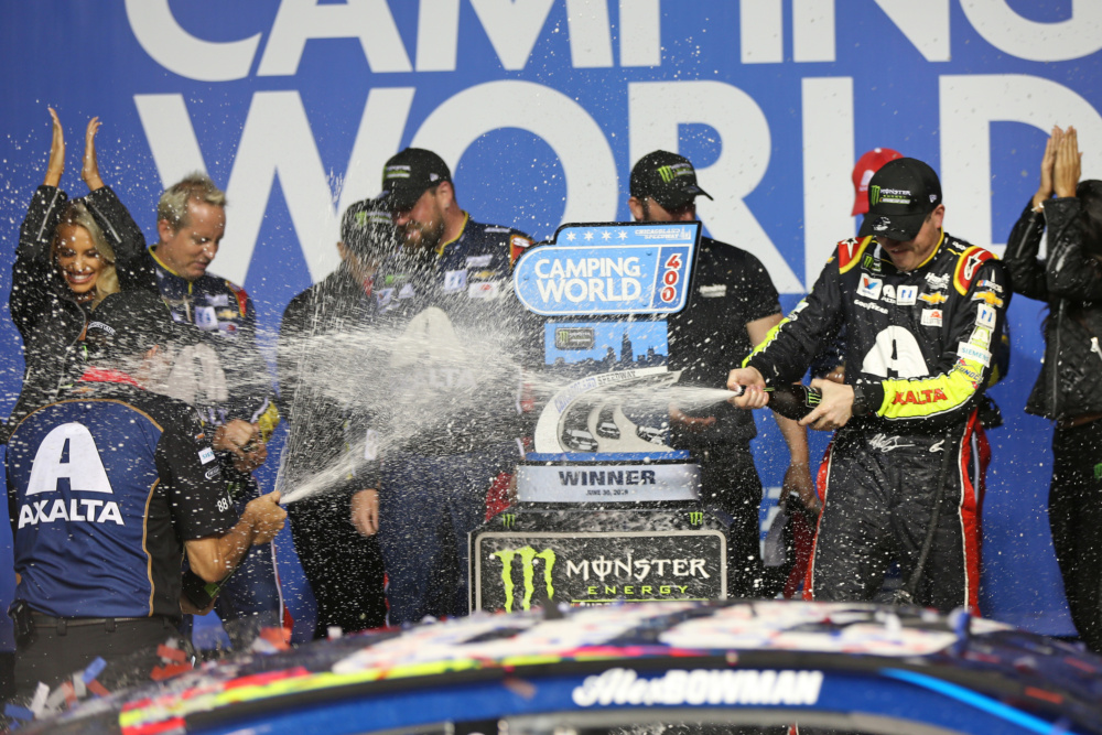 Take a look as Alex Bowman celebrated his first career NASCAR Cup Series win at Chicagoland Speedway.