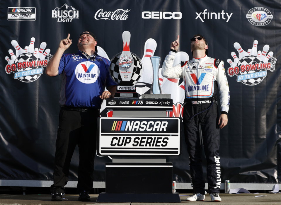 William Byron earned his fifth win of the 2023 NASCAR Cup Series at Watkins Glen International. The victory was his first on a road course. Take a look at all the jubilation and celebration for Byron and the No. 24 team.