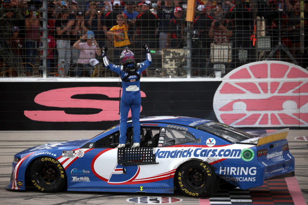 Kyle Larson celebrated in victory lane at Texas Motor Speedway when he took the checkered flag for his career-high eighth victory this year. Check out Larson's celebration after he punched his ticket into the NASCAR Cup Series Championship 4 race.
