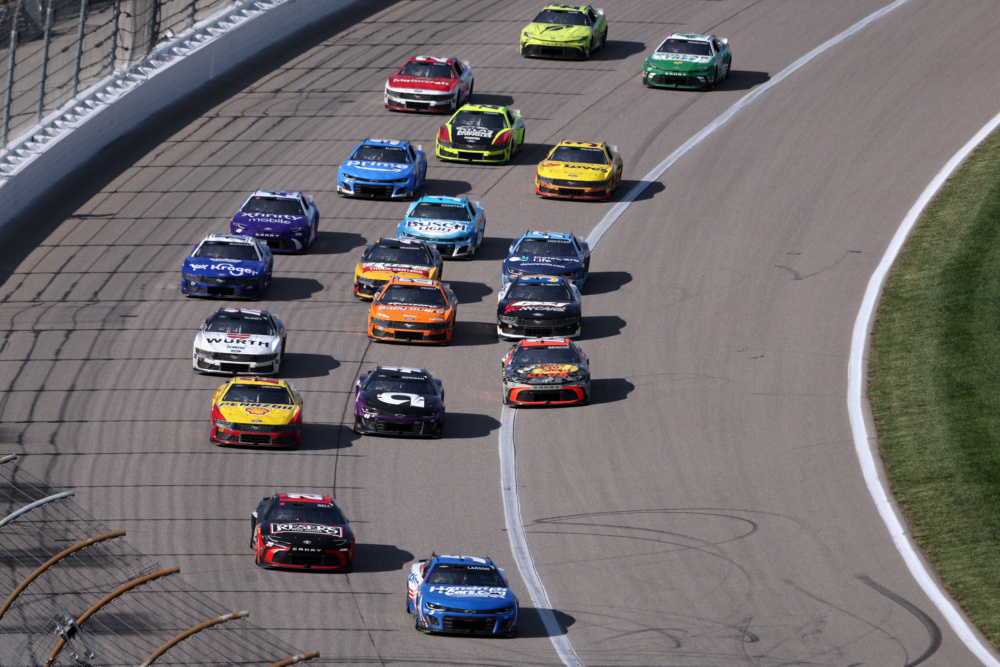Kyle Larson set a new track record, leading 221 laps, sweeping the stages and registering the event's fastest lap in winning at Kansas Speedway on Sunday, May 11, 2025.