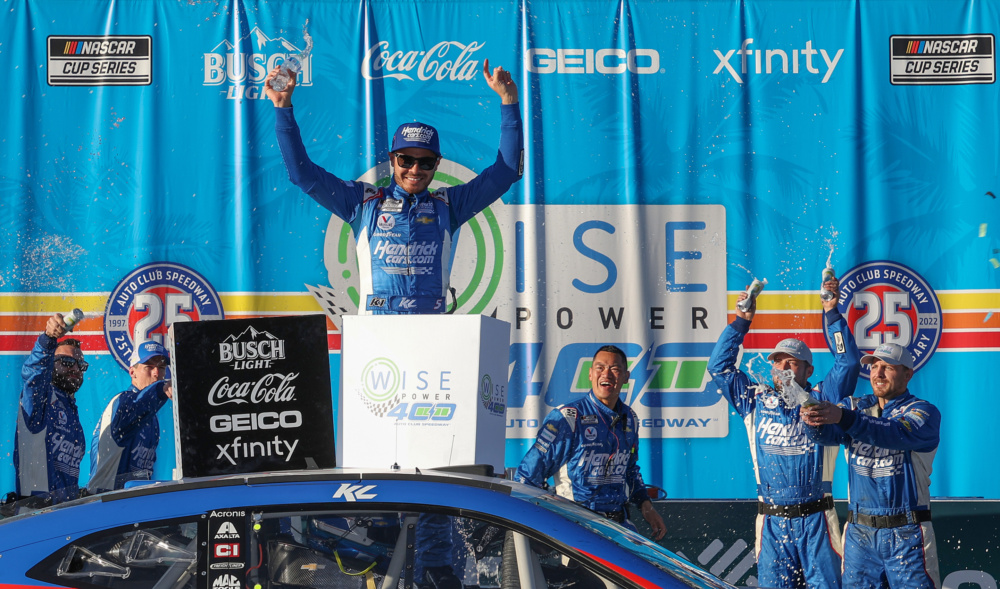 Go behind the scenes at Auto Club Speedway with some of our best photos from Kyle Laron's first win of the 2022 season. The reigning champ led four times for a total of 28 laps, including the final seven.