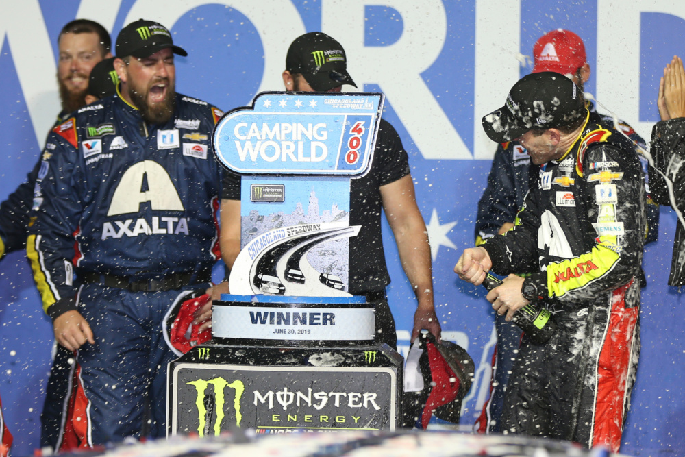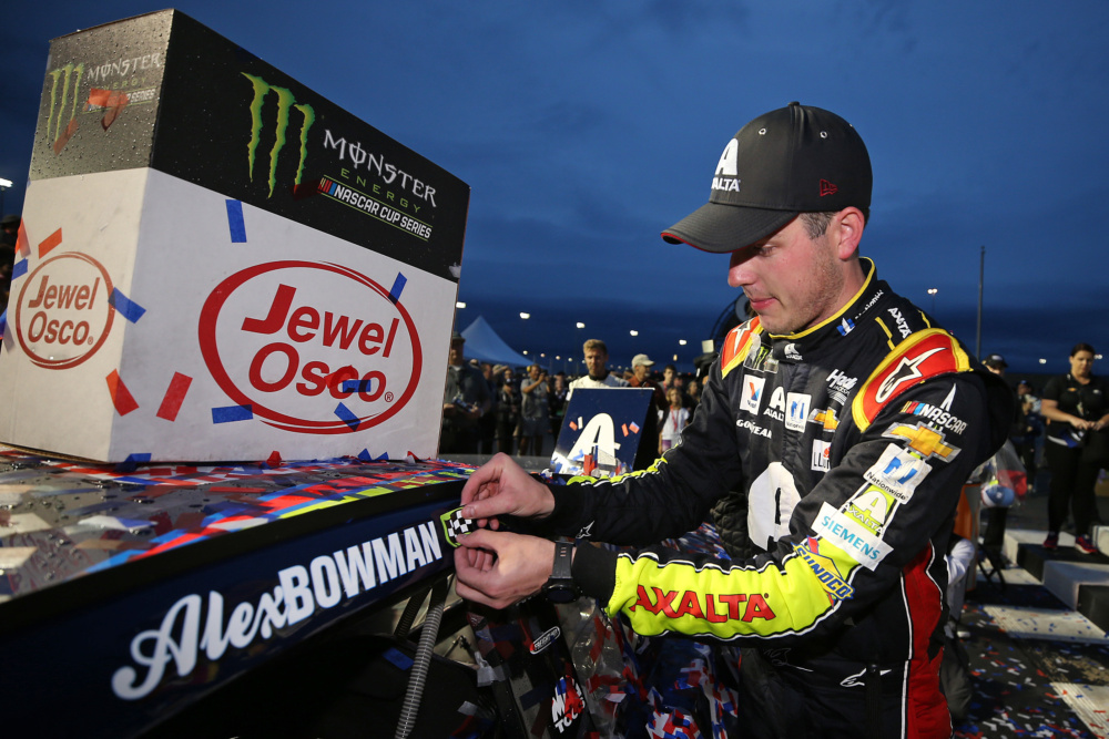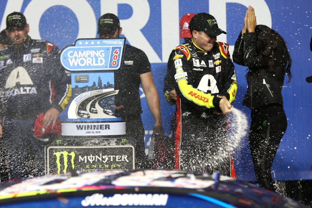 Take a look as Alex Bowman celebrated his first career NASCAR Cup Series win at Chicagoland Speedway.