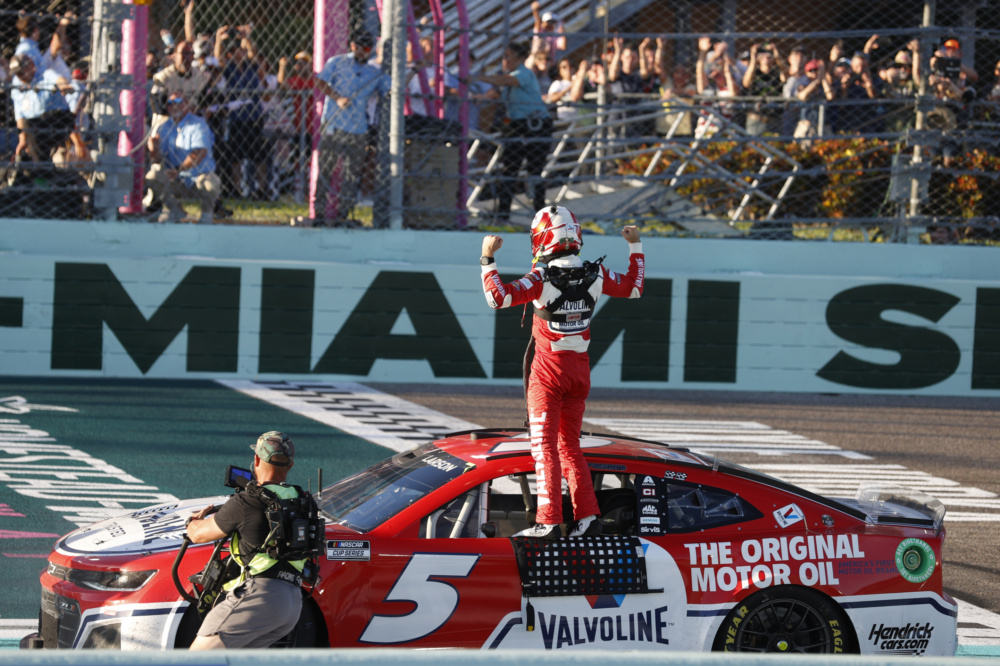 Kyle Larson piloted the No. 5 Valvoline Chevrolet Camaro ZL1 to victory lane at Homestead-Miami Speedway, his first career win at the facility. See the celebratory scenes from a dominating performance in South Florida.